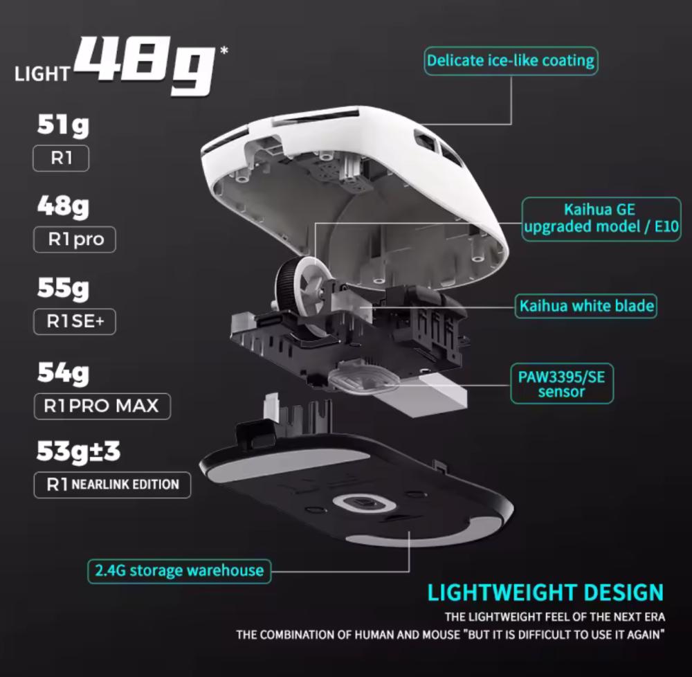 تأخير منخفض للغاية واتصال لاسلكي مستقر: مزود بتقنية لاسلكية فريدة من نوعها "سمارت سبيد اكس" توفر وقت استجابة منخفض للغاية واتصال لاسلكي ثابت، مما يسمح لك بالتبديل بسلاسة بين الاتصالات اللاسلكية والسلكية 2.4 جيجاهرتز. يدعم R1 SE+ اتصال لاسلكي 2.4 جيجاهرتز وبلوتوث